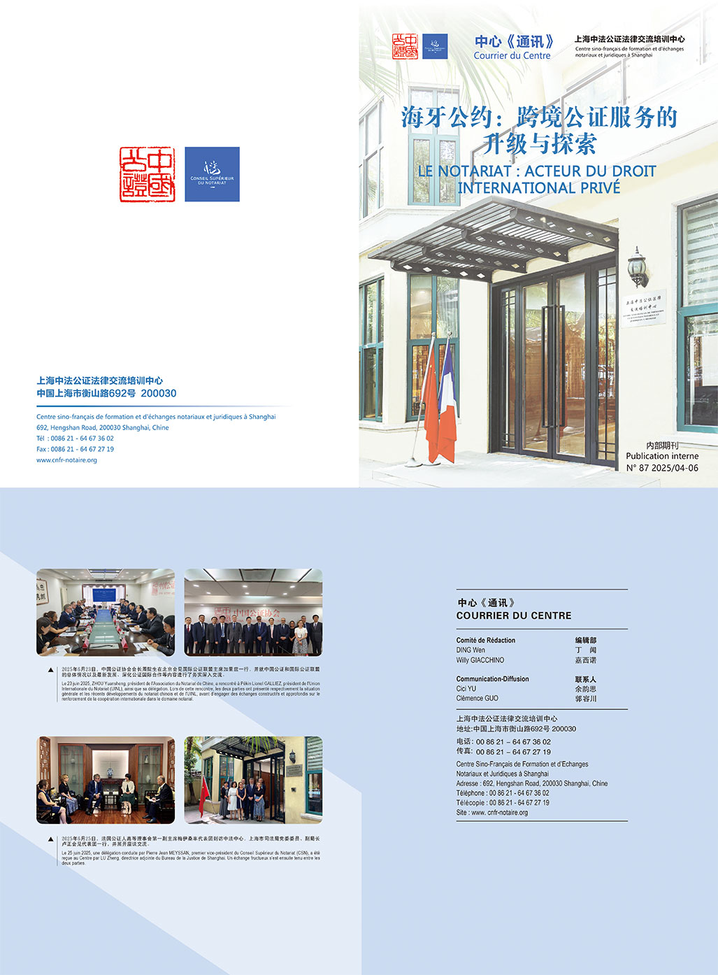 Le Centre Sino-français de Formation et d'Echanges Notariaux et Juridique à Shanghai, par un programme d'échanges professionnels, de séminaires et de formations , offre au système juridique et judiciaire chinois en voie de formation les fruits d'une expérience juridique française.